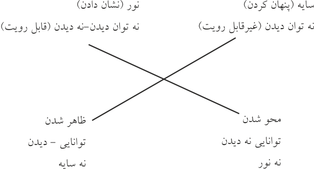 نور نه تنها موضوع حسي است، بلكه همان‌طور كه گفته شد عامل نشان دادن است. پس دو نقش اساسي دارد: نقش نحوي در روايت و موضوع ادراك. تابش نور هم تحريك كندده مي‌شود و هم تسهيل كننده. گاهي قدرت ديد را بيشتر مي‌كند گاهي كمتر. به عبارتي آستانه حساسيت بيننده را تغيير مي‌دهد.